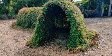 Circuito de plantas desarrollado con el interés de exponer a nuestros pacientes al contacto corporal de plantas colgantes en un túnel de flores y hojas .